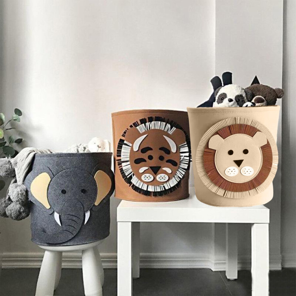 YUANKEECE Foldable Storage Basket, for Toys and Laundry Organizer, Collapsible Fabric Bin with Animal Design, Space-Saving Closet and Nursery Organizer for Kids Room (Lion)