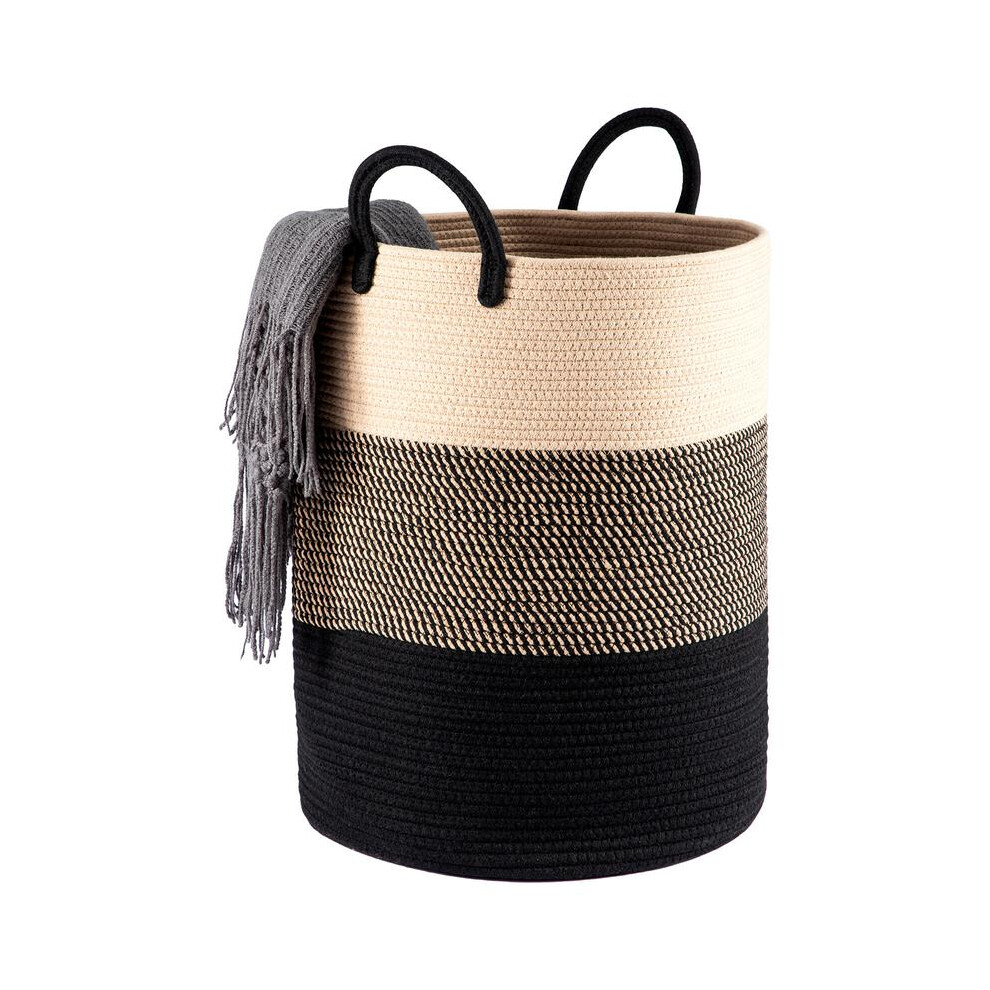 (Black) 58L Cotton Rope Basket Large Blanket Woven Storage Organiser Nursery Laundry Rope Basket Large Blanket Woven Storage Organiser Nursery Laund