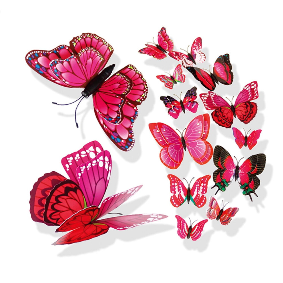Tarmeek 12Pcs 3D Butterfly Wall Decals, 4 Sizes, Removable Art Decor, compatible with nursery, bedroom, living room, curtains, party, cake, wedding,