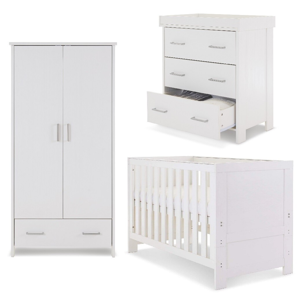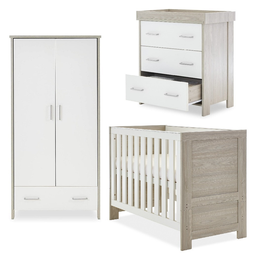 Harper 3 Piece Nursery Set - Cot Bed, Dresser with Removable Changing Top and Wardrobe - Cream & Ash