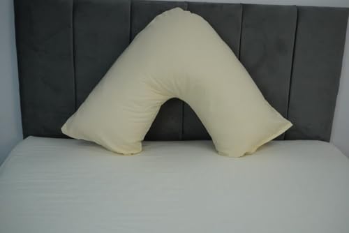 Pack of 2 Plain Poly-Cotton Back & Neck Support V Shaped Pillowcase Orthopaedic/Pregnancy/Nursing Pillow Case Pair- Available in 25 Colours 74 x 34cm (Cream)