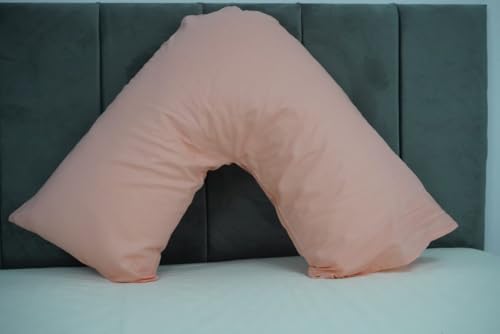 Pack of 2 Plain Poly-Cotton Back & Neck Support V Shaped Pillowcase Orthopaedic/Pregnancy/Nursing Pillow Case Pair- Available in 25 Colours 74 x 34cm (Peach)