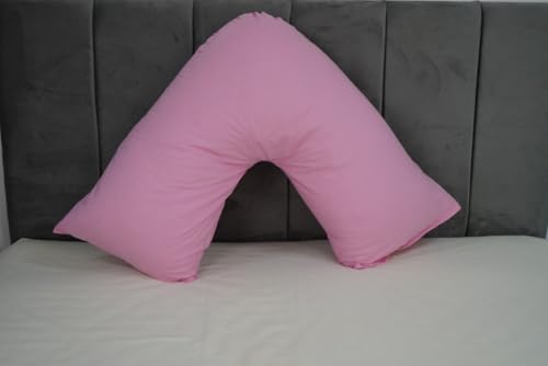 Pack of 2 Plain Poly-Cotton Back & Neck Support V Shaped Pillowcase Orthopaedic/Pregnancy/Nursing Pillow Case Pair- Available in 25 Colours 74 x 34cm (Pink)