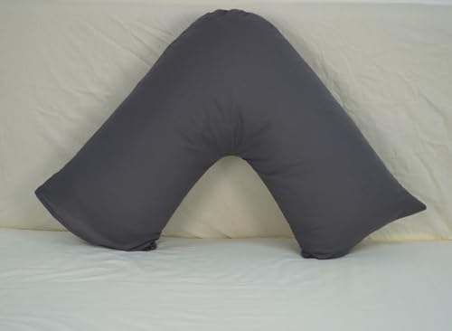 Pack of 2 Plain Poly-Cotton Back & Neck Support V Shaped Pillowcase Orthopaedic/Pregnancy/Nursing Pillow Case Pair- Available in 25 Colours 74 x 34cm (Charcoal)