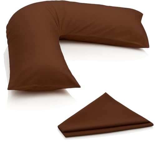 Pack of 2 Plain Poly-Cotton Back & Neck Support V Shaped Pillowcase Orthopaedic/Pregnancy/Nursing Pillow Case Pair- Available in 25 Colours 74 x 34cm (Chocolate)