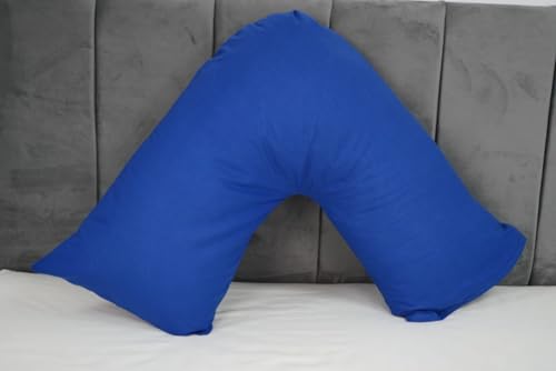 Pack of 2 Plain Poly-Cotton Back & Neck Support V Shaped Pillowcase Orthopaedic/Pregnancy/Nursing Pillow Case Pair- Available in 25 Colours 74 x 34cm (Royal Blue)