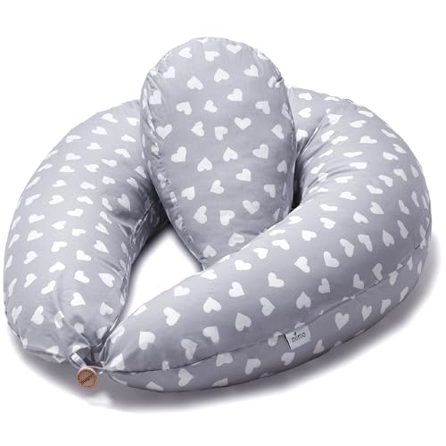Niimo XXL+ Pregnancy Pillow & Nursing Pillow - PLUS Pregnancy Sleeping Wedge, 100% Cotton Cover, 100% Machine-Washable, Grey with White Hearts (200 x 70 cm)