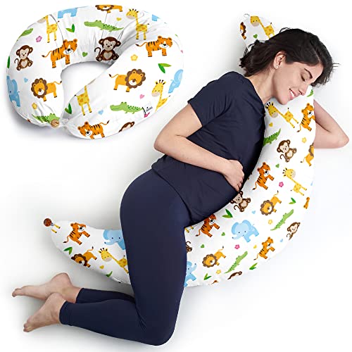 Niimo XXL Pregnancy Pillow & Nursing Pillow - 2-in-1 Design with a 100% Cotton Cover, Machine-Washable, Jungle (200 x 70 cm)