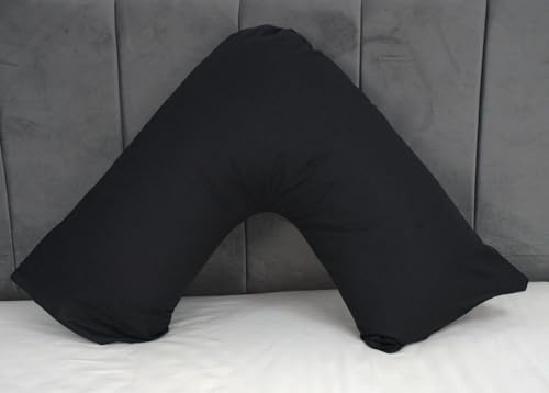 ARLINENS Pack of 2 Plain Poly-Cotton Back & Neck Support V Shaped Pillowcase Orthopaedic/Pregnancy/Nursing Pillow Case Pair- Available in 25 Colours 74 x 34cm (Black)