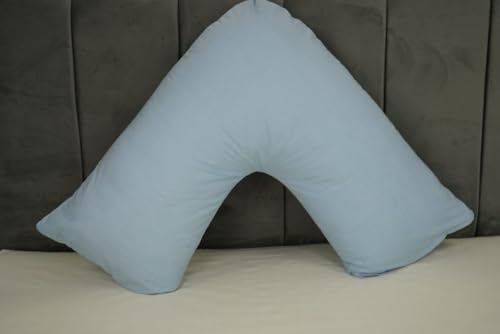 Pack of 2 Plain Poly-Cotton Back & Neck Support V Shaped Pillowcase Orthopaedic/Pregnancy/Nursing Pillow Case Pair- Available in 25 Colours 74 x 34cm (Sky Blue)