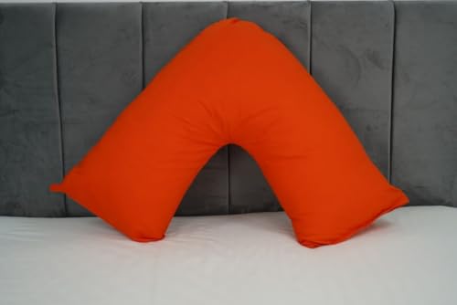 Pack of 2 Plain Poly-Cotton Back & Neck Support V Shaped Pillowcase Orthopaedic/Pregnancy/Nursing Pillow Case Pair- Available in 25 Colours 74 x 34cm (Orange)