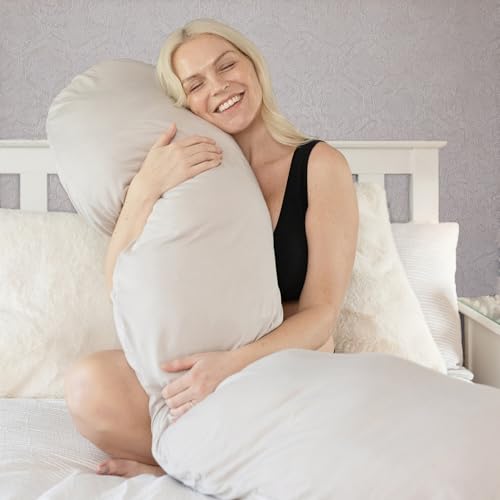SHANNA Full Body Maternity Pillow, J Shape Pregnancy Pillow, Long Nursing and Support Pillow for Adults with Replaceable and Washable Cover for Sleeping and Feeding
