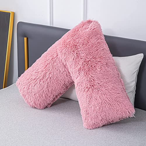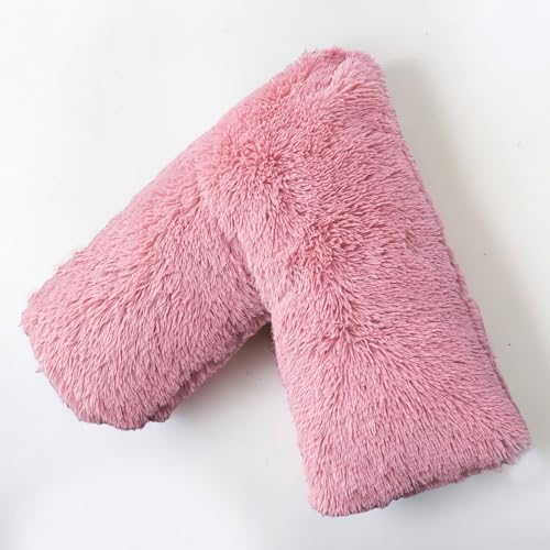 EDS Pregnancy Teddy Fleece V Pillow with Pillowcase Provide Support During Pregnancy Nursing and for Orthopedic Super Soft Comfortable V-shaped Pillows for Head, Neck and Back LH (PINK)
