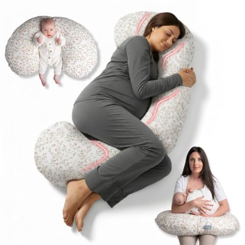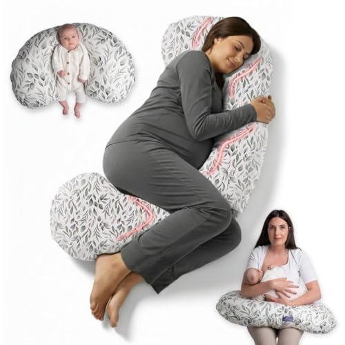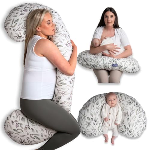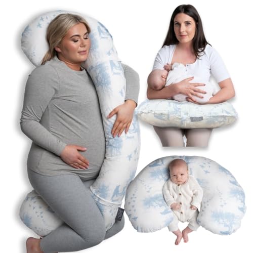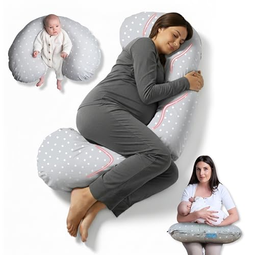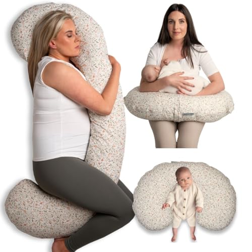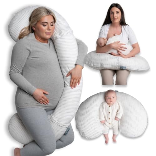BellaMoon 3 in 1 Pregnancy Pillow – Full Body Pillow Support for Pregnant Women - Adjustable C Shaped Pregnancy Pillows for Sleeping, Nursing & Baby Lounger - Washable Organic Cotton Cover.