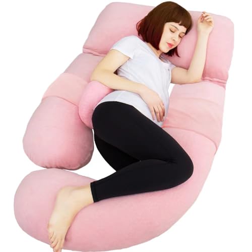 AS AWESLING 60in Full Body Pillow | Nursing, Maternity and Pregnancy Body Pillow | Extra Large U Shape Pillows and Lounger with Detachable Side, Separate Support Pillows and Removable Cover (Pink)