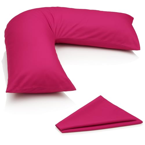 ARLINENS V Pillow With Pillowcase - Orthopedic V Pillows, Hollow Fiber V Pillow For Neck, Back, Pregnancy & Nursing Support Pillow-with polycotton pillowcase Standard Size 74 x 34cm (Fuschia)