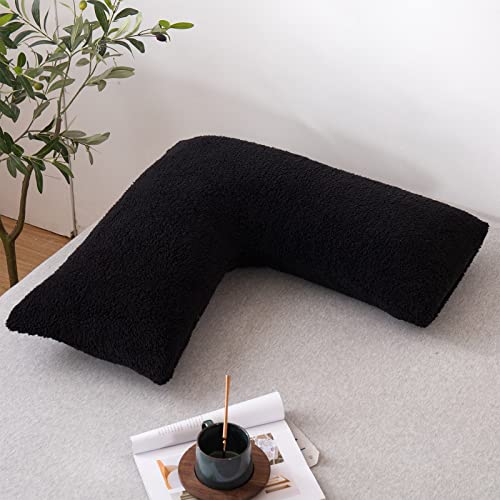 LSC Pregnancy V Pillow Teddy Fleece V Shaped Pillow with Pillowcase Nursing, Maternity and Orthopaedic Support Pillows Soft Warm Fleece Hollowfiber Filling for Head, Neck and Back (Black)