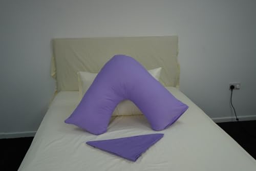 ARLINENS V Pillow With Pillowcase - Orthopedic V Pillows, Hollow Fiber V Pillow For Neck, Back, Pregnancy & Nursing Support Pillow-with polycotton pillowcase Standard Size 74 x 34cm (Lilac)