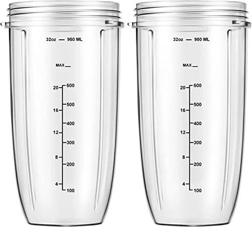 Blender Replacement Cups for Nutribullet Blender, 32oz Cups Compatible with Nutri Bullet 600W/900W Blenders (2-Pack)