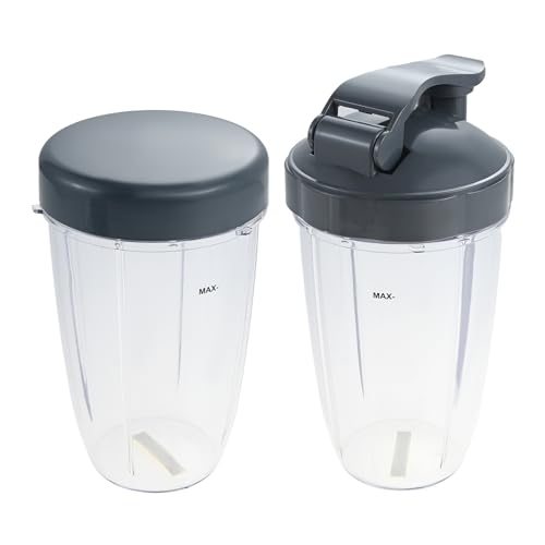 DRELD 2 Sets of Blender Cups 24oz with Flat Lid and Flip Top to-Go Lid Replacement for Nutri Bullet Juicer Beaker 24Oz 600w 900w