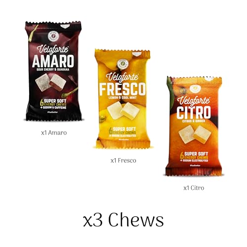 Veloforte Energy Chews - 44g carbs | Running, Cycling, Endurance sport | Soft Gummies & Bloks | Natural Electrolytes - Alternative to Energy Gels & Drinks | Performance Nutrition Vegan (3 Pack)
