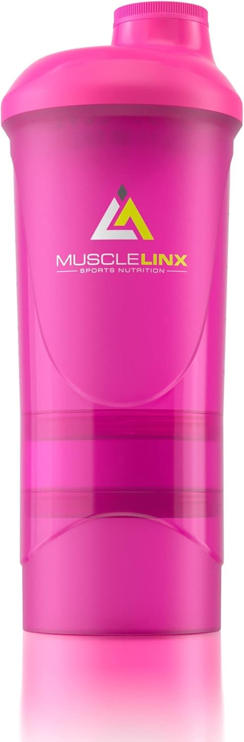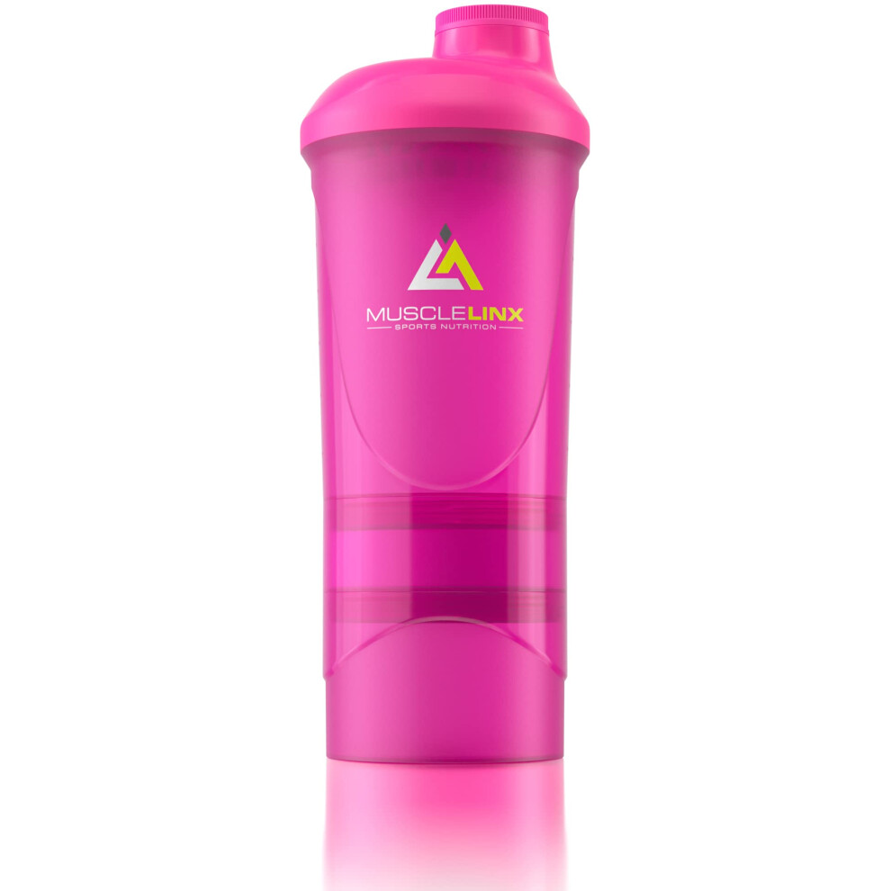 Pink Protein Shaker Plus Storage Screw top 100% Leak Proof Drinks Bottle 500ml to 700ml by Musclelinx