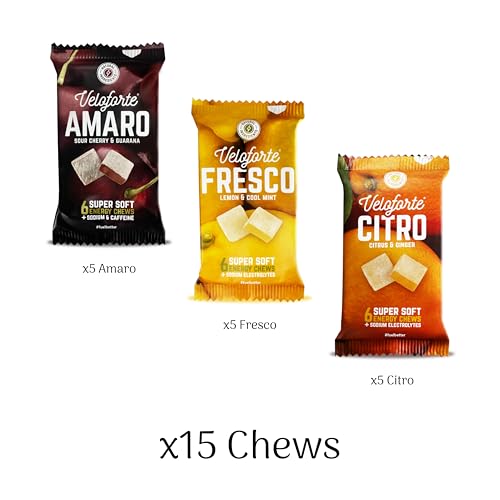 Veloforte Energy Chews - 44g carbs | Running, Cycling, Endurance sport | Soft Gummies & Bloks | Natural Electrolytes - Alternative to Energy Gels & Drinks | Performance Nutrition Vegan (15 Pack)
