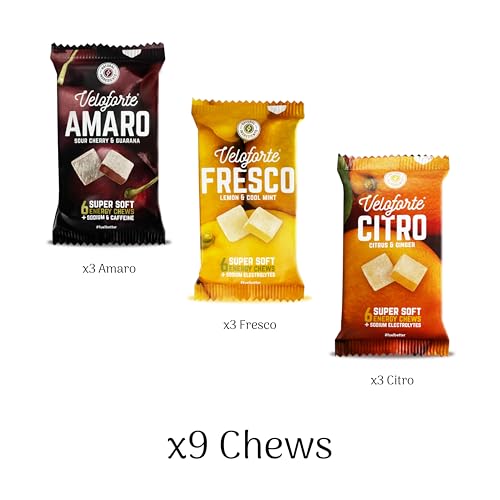 Veloforte Energy Chews - Super-soft, 44g carbs, Electrolytes, Natural Alternative to Energy Drinks, Gels, Fast Energy Nutrition for Running, Cycling, Endurance, Vegan Bloks (9 Pack)