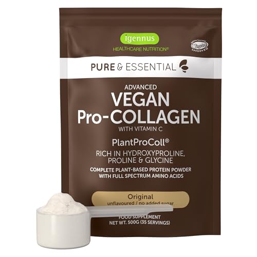 Igennus Vegan Pro-Collagen Protein Powder, Plant-Based Peptide Supplement with Glycine, 21 Amino Acids & Vitamin C, Complete Collagen Boosting Formula, Mix into Drinks or Food, 35 Servings