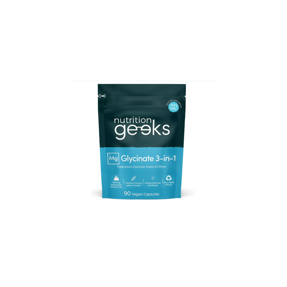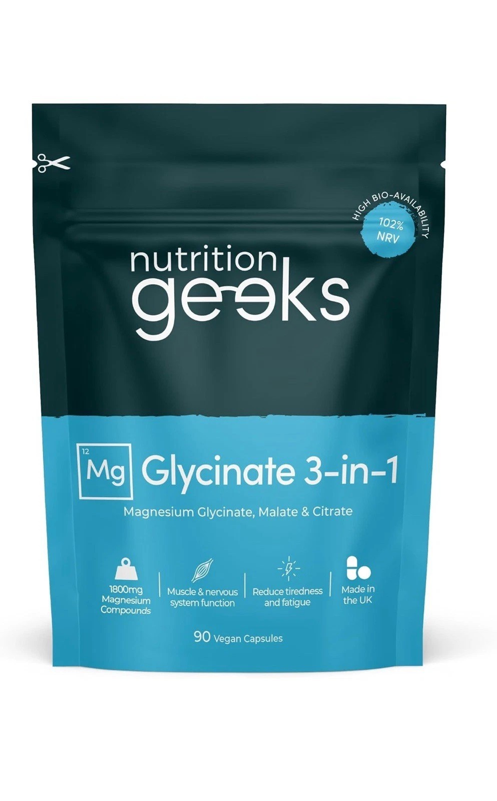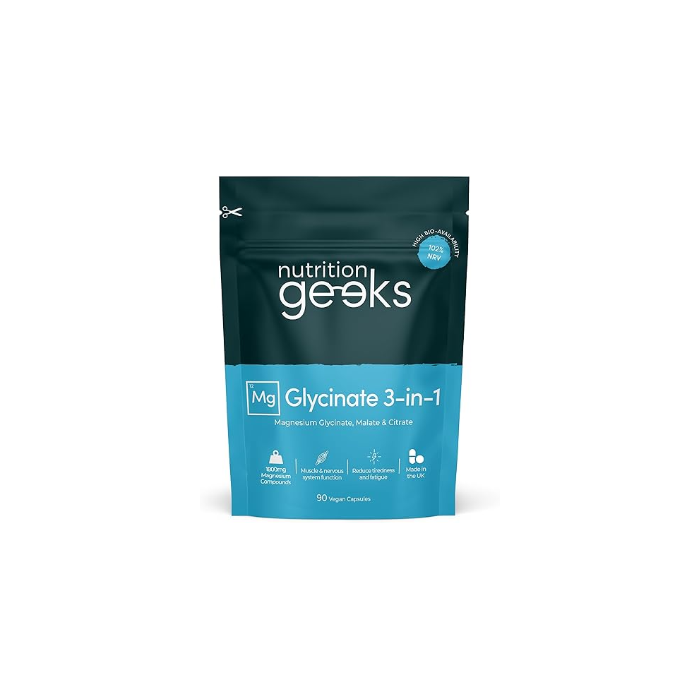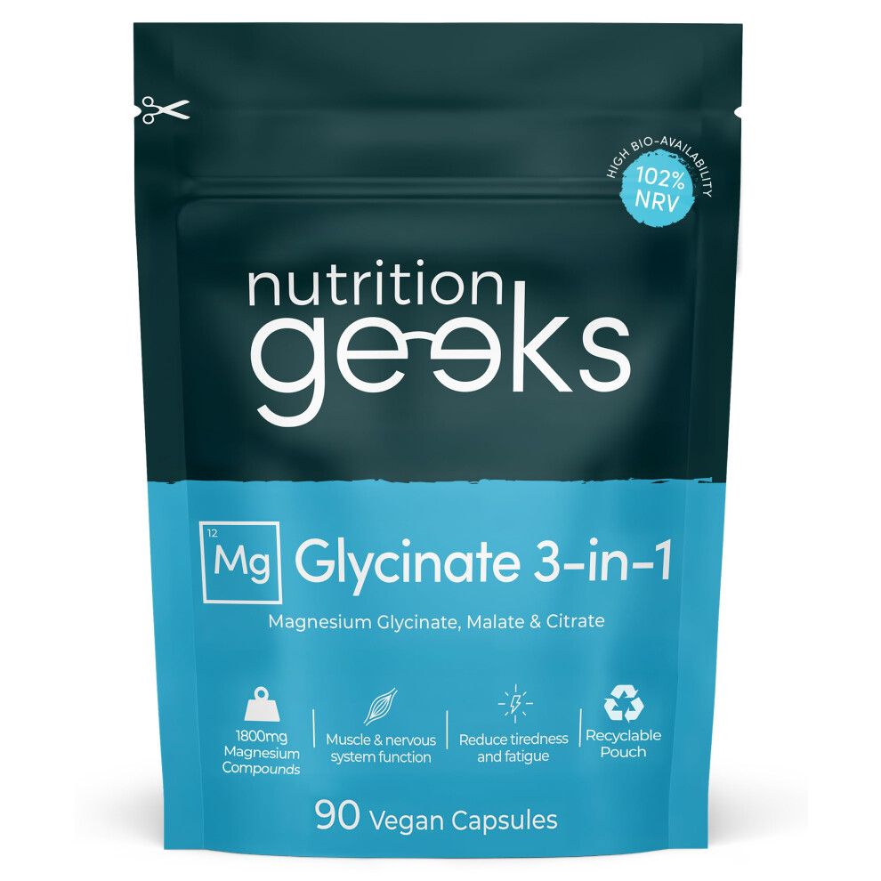 Nutrition Geeks Magnesium Glycinate 3-in-1 Complex 1800mg 90 Vegan Capsules UK M