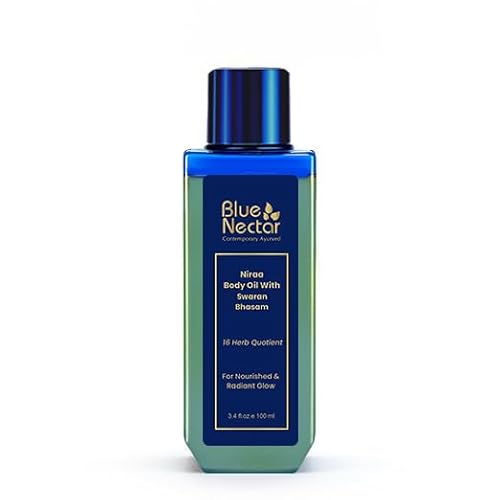Blue Nectar Body Oil with 24K Swaran Bhasam for Glowing Skin | Ayurvedic Body Oil for Dry Skin | Nourishing Oil with 24K Gold & Shimmer (16 Herbs, 100 ml)