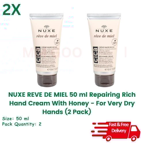 2x NUXE REVE DE MIEL 50 ml Repairing Rich Hand Cream, Honey For Very Dry Hands