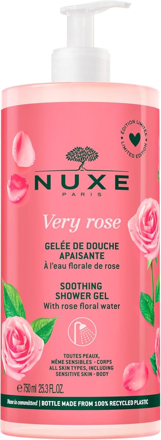 NUXE Very Rose Soothing Shower Gel 750ml, Gentle Body Cleanser, For All Skin Ty