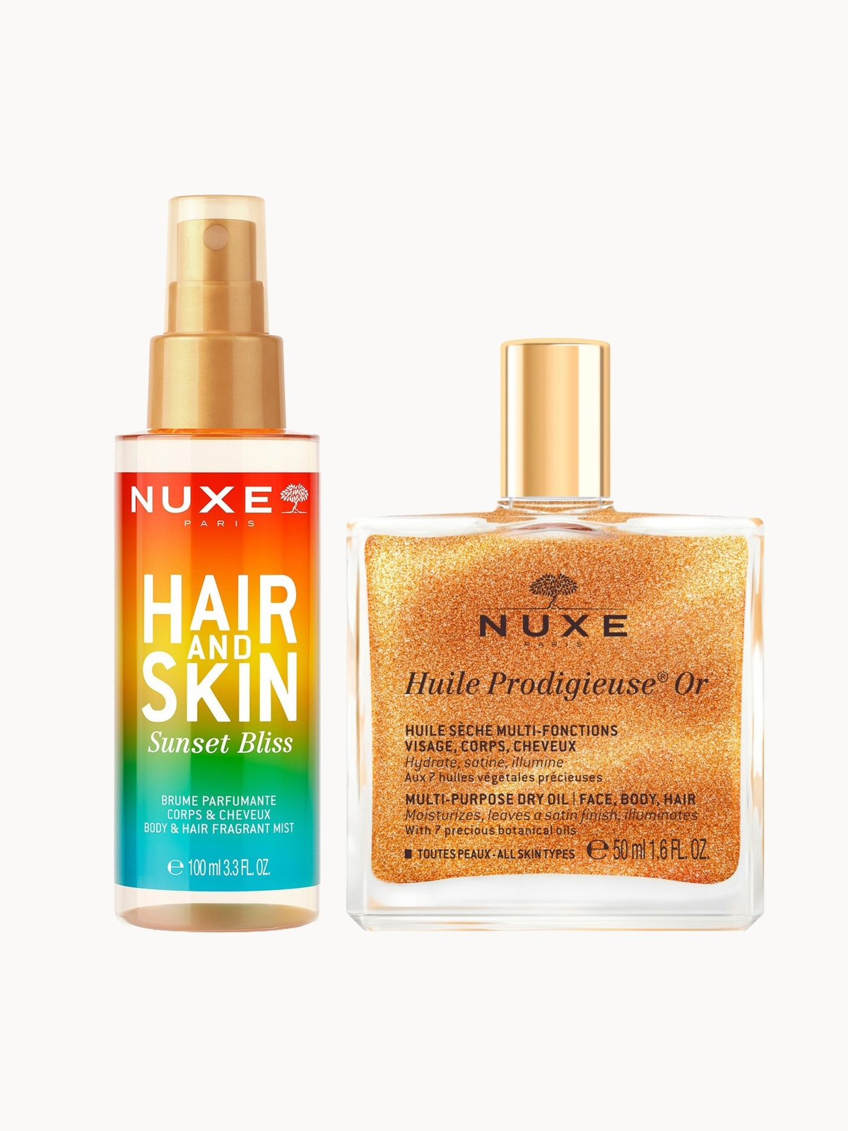 NUXE Huile Prodigieuse Shimmering Multi-Purpose Dry Oil 50ml & 'Sunset Bliss' Hair & Body Fragrance Mist 100ml Bundle