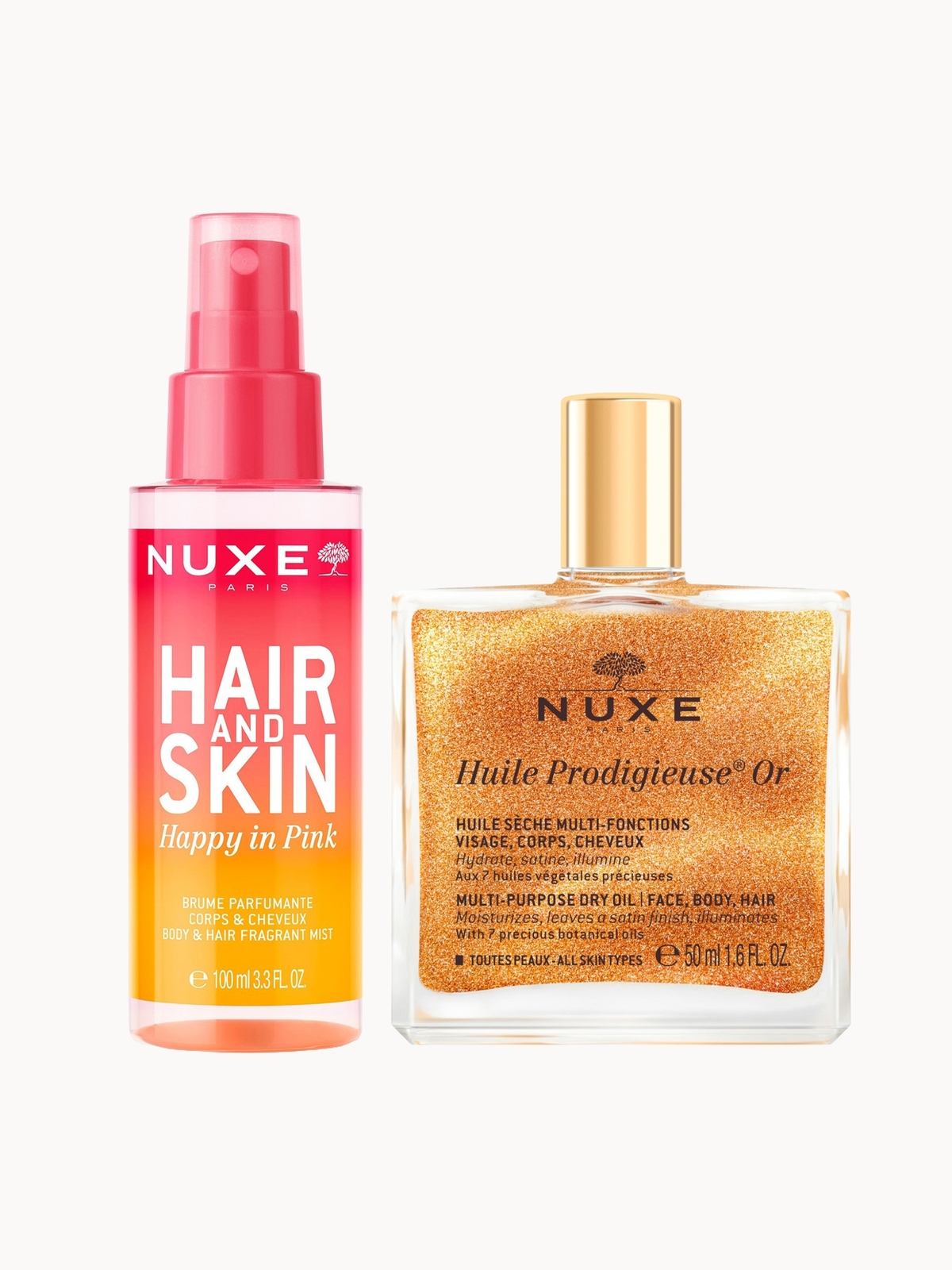 NUXE Huile Prodigieuse Shimmering Multi-Purpose Dry Oil 50ml & 'Happy In Pink' Hair & Body Fragrance Mist 100ml Bundle
