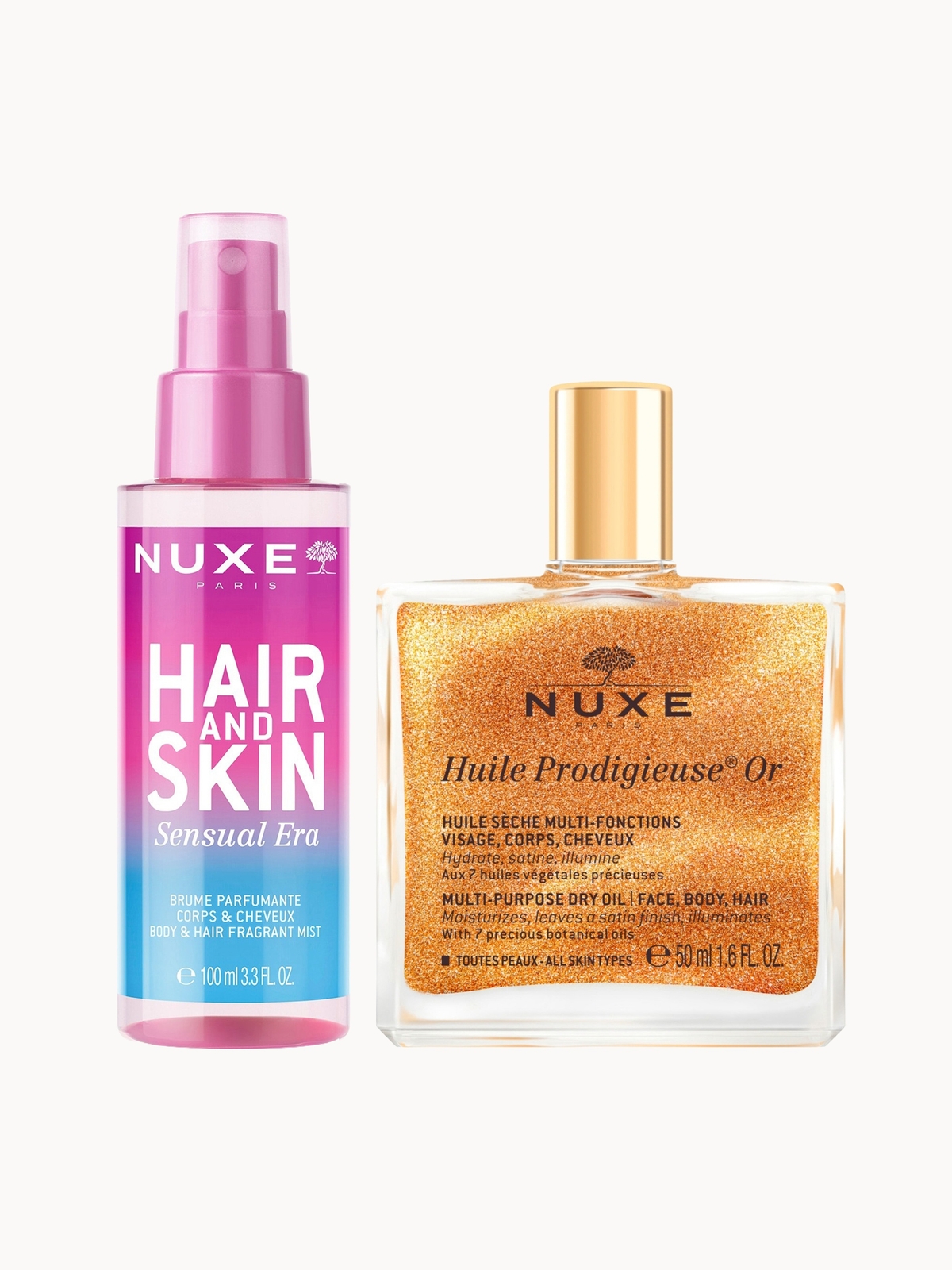 NUXE Huile Prodigieuse Shimmering Multi-Purpose Dry Oil 50ml & 'Sensual Era' Hair & Body Fragrance Mist 100ml Bundle