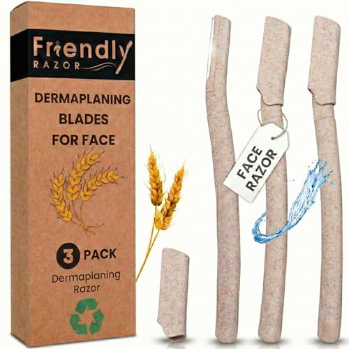 BLESSDOME 4Pcs Biodegradable Wheat Straw Eyebrow Razor Shaper for Women | Peach Fuzz & Facial Hair Remover and Trimmer | Exfoliating Dermaplane Tool |Eco-Friendly Dermaplaning Blades for Face