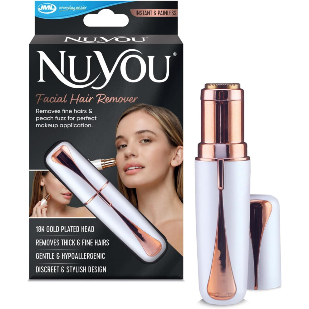 JML NuYou Facial Hair Remover for Women - Quick and Painless Hair Removal with 18K Gold Blades, Portable Facial Trimmers, Lipstick Design