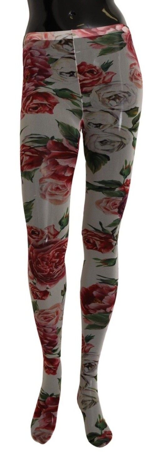 DOLCE & GABBANA Socks Women Multicolor Rose Print Nylon Stockings s. M