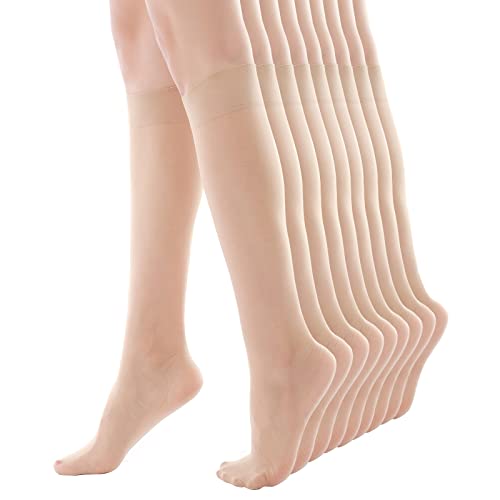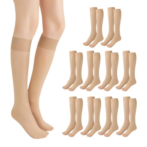 10 Pairs Pop Socks Women Knee High, Breathable KneeHigh Socks 15 Denier for Women, Sheer Long Stockings, Nude Ladies Knee High Tights Sheer Nylon Stockings