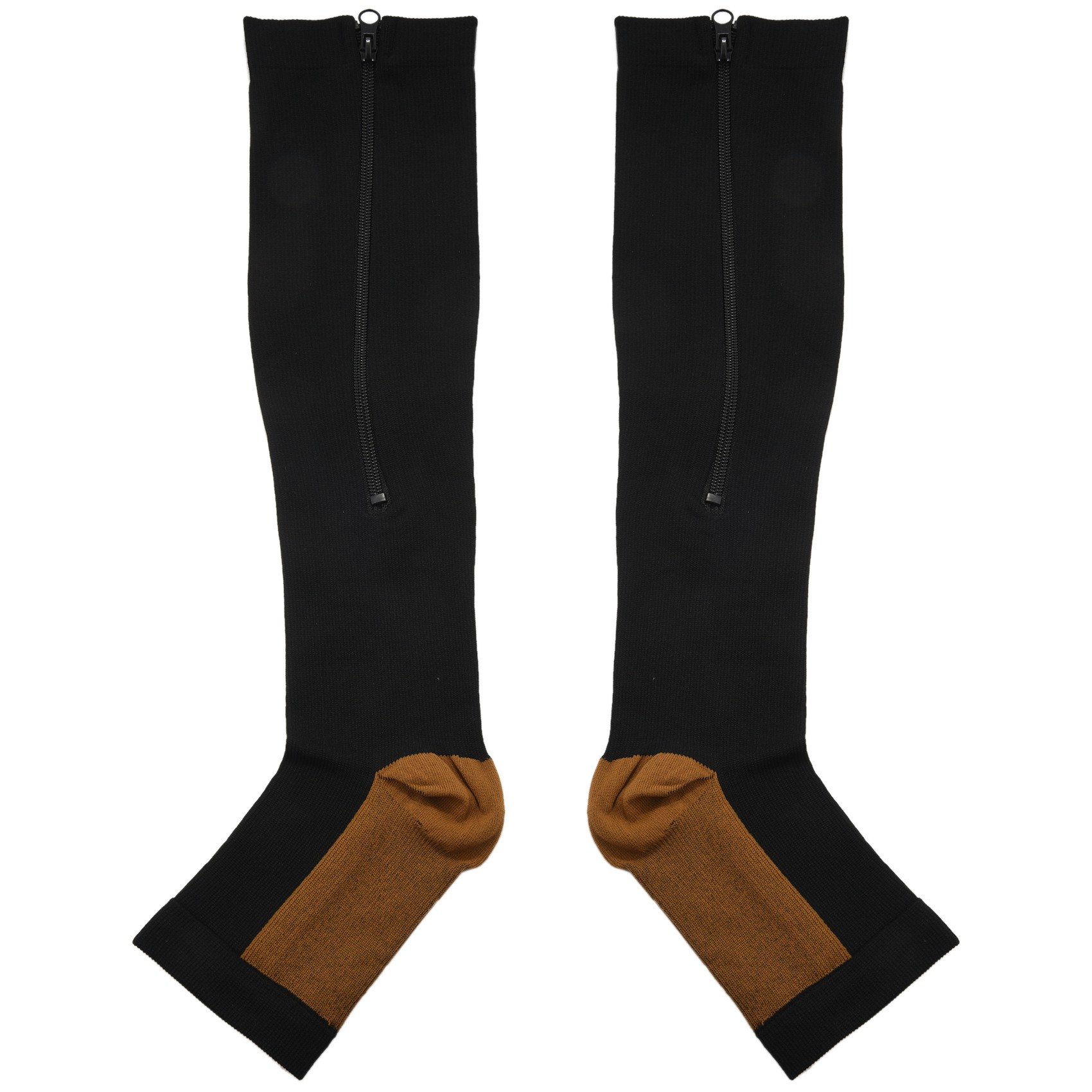 Compression Stockings Nylon Zipper Compression Sock Leg Knee Support Open3376