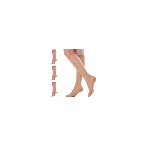 Yilanmy 3 Pairs Knee High Pop Socks Women 40D Glossy Shiny Shimmer Sheer Nylon Stockings Wide Calf One Size(Natural*3)