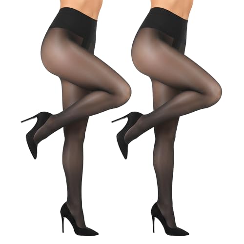 CIATBYYJ 2 Pairs Black Anti-hooking Sheer Tights for Women, Soft Control Top Pantyhose with Reinforced Toes, Pantyhose for Women Tummy Control, High Waist Flexible Nylon Stockings