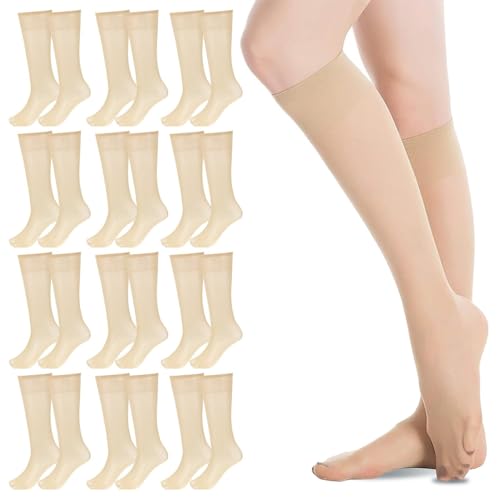 12 Pairs Knee High Socks Pop Socks For Women,Light Skin Color Women's Knee Socks,Sheer Long Socks Stockings For Women Nude Knee High Tights Sheer Nylon Stockings For Women,Ladies Nylon Knee Socks