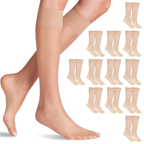 Vokmon 12 Pairs Pop Socks For Women, Sheer Nude Knee High Tights, Ladies Nylon Stockings