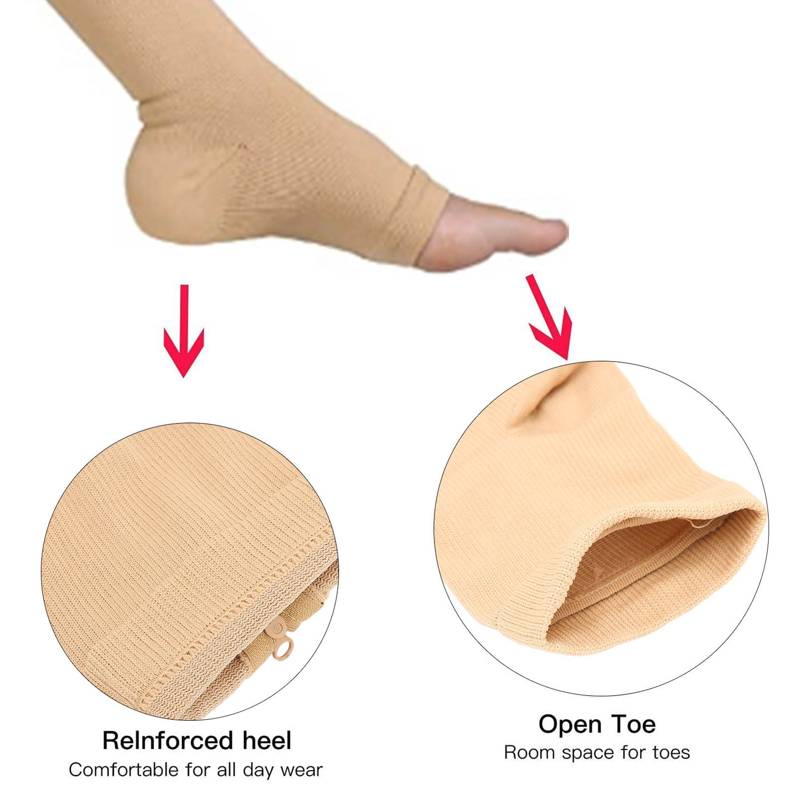 Nylon Compression Stockings Zipper Design Promote Blood Circulation Open Toe Com