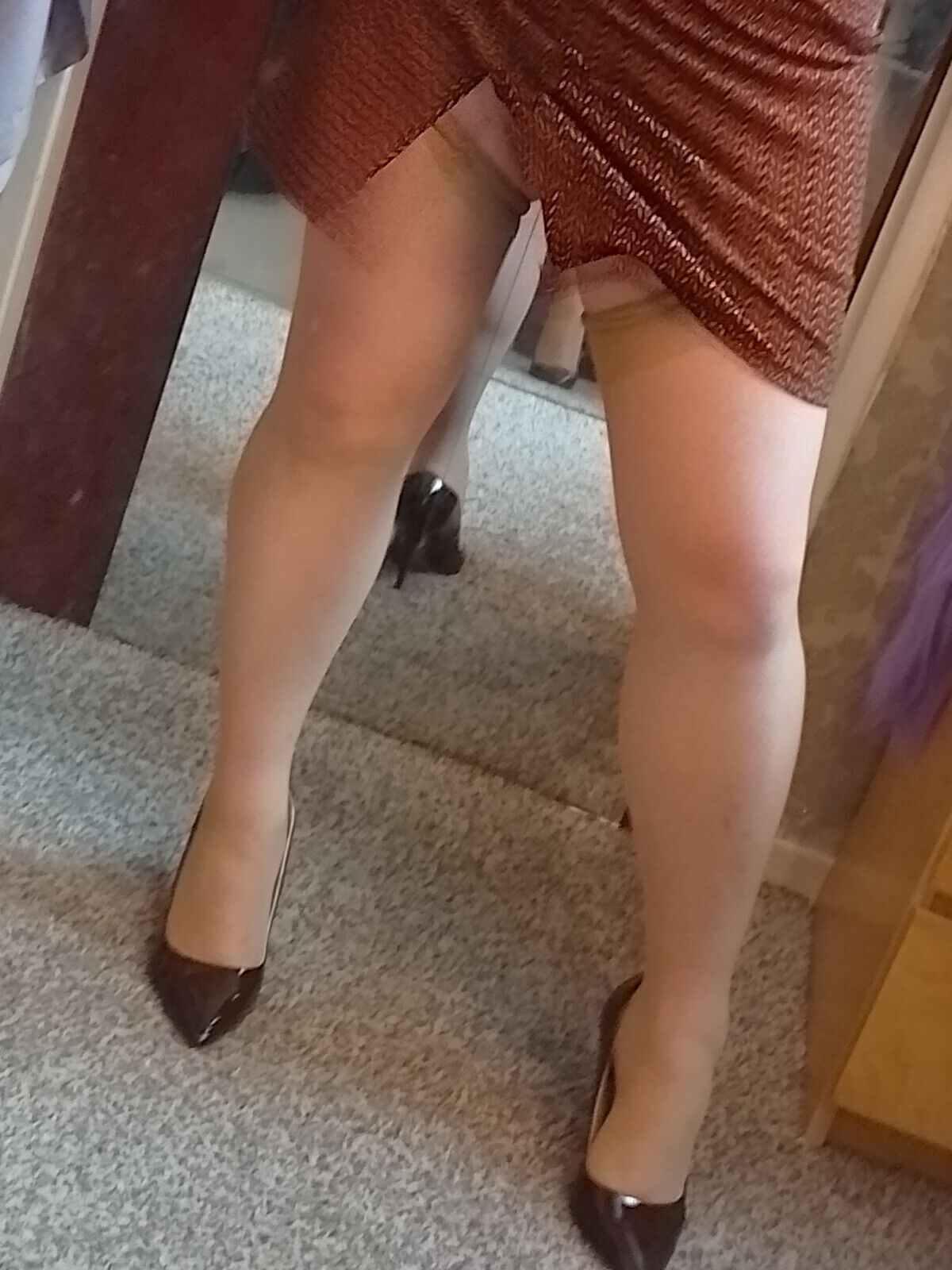 Black Tops Black Cuban Heels + Back Seams Sheer Nude Nylon Sexy Stockings P1024