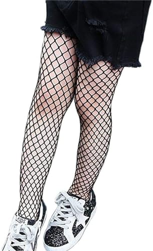 Geagodelia Girls Halloween Fishnet Tights Stockings Leggings Socks Fish Nets Stockings Nylon Halloween Costume Tights (One Size, medium net Black)