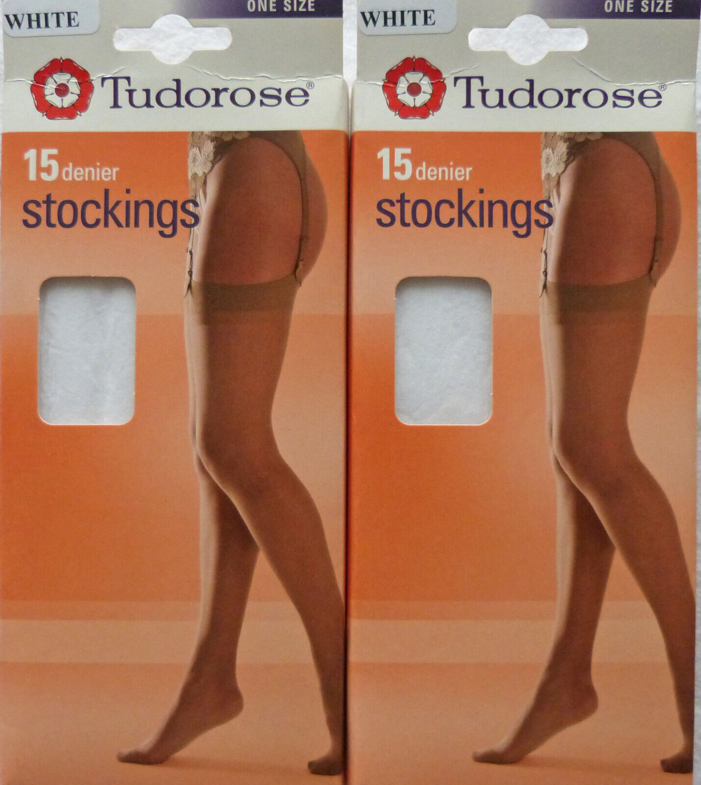 2 pairs of Tudorose One Size 15 Denier Sheer Nylon Stockings in White