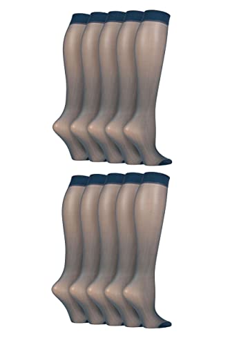 SockShop Womens Knee Highs Nylon Stockings Pop Socks Hosiery 15 Denier in Various Shades One Size Pack of 10 Knee - Navy 4-8